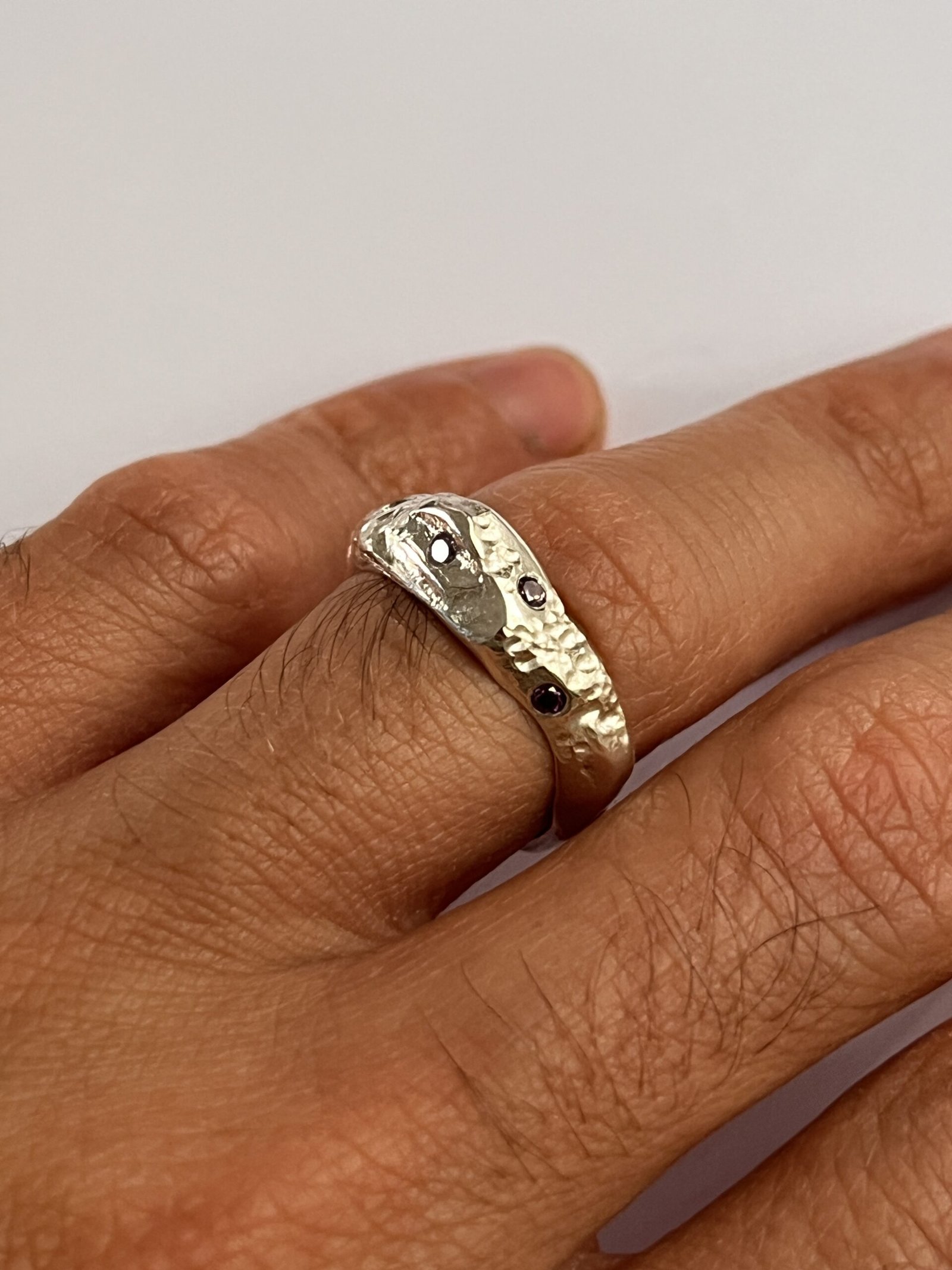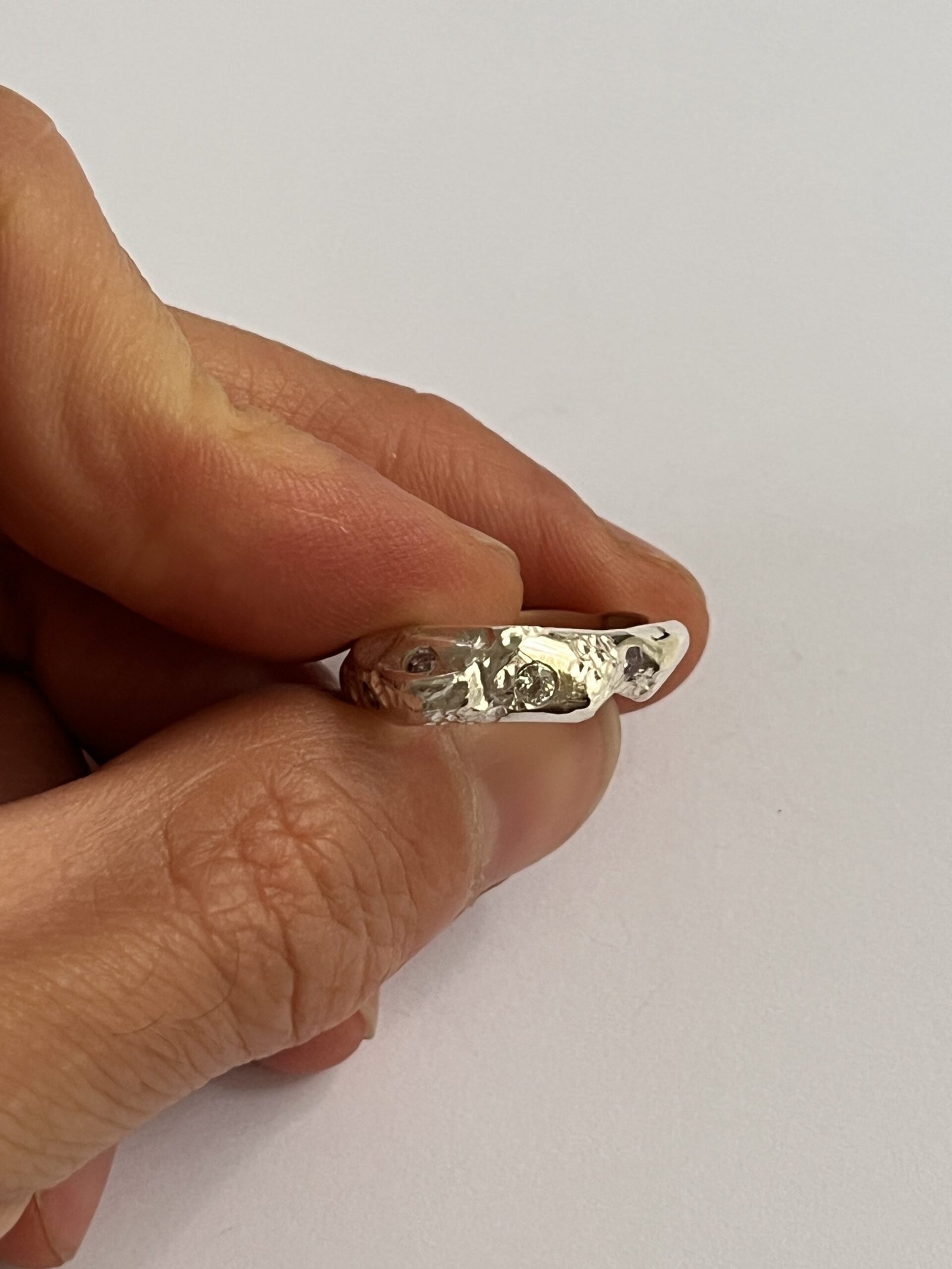 Anillo orgánico con circonias  violetas y blancas